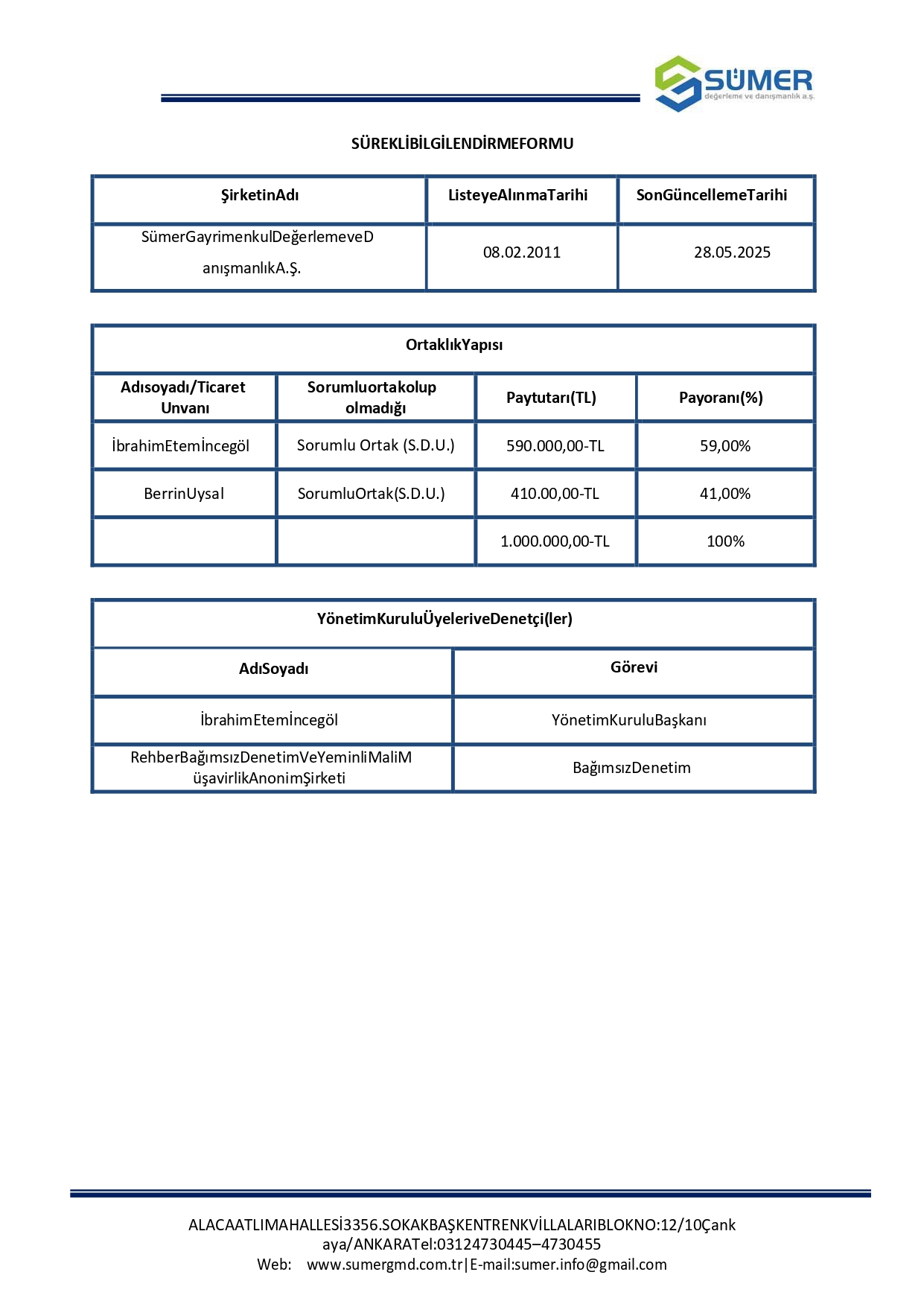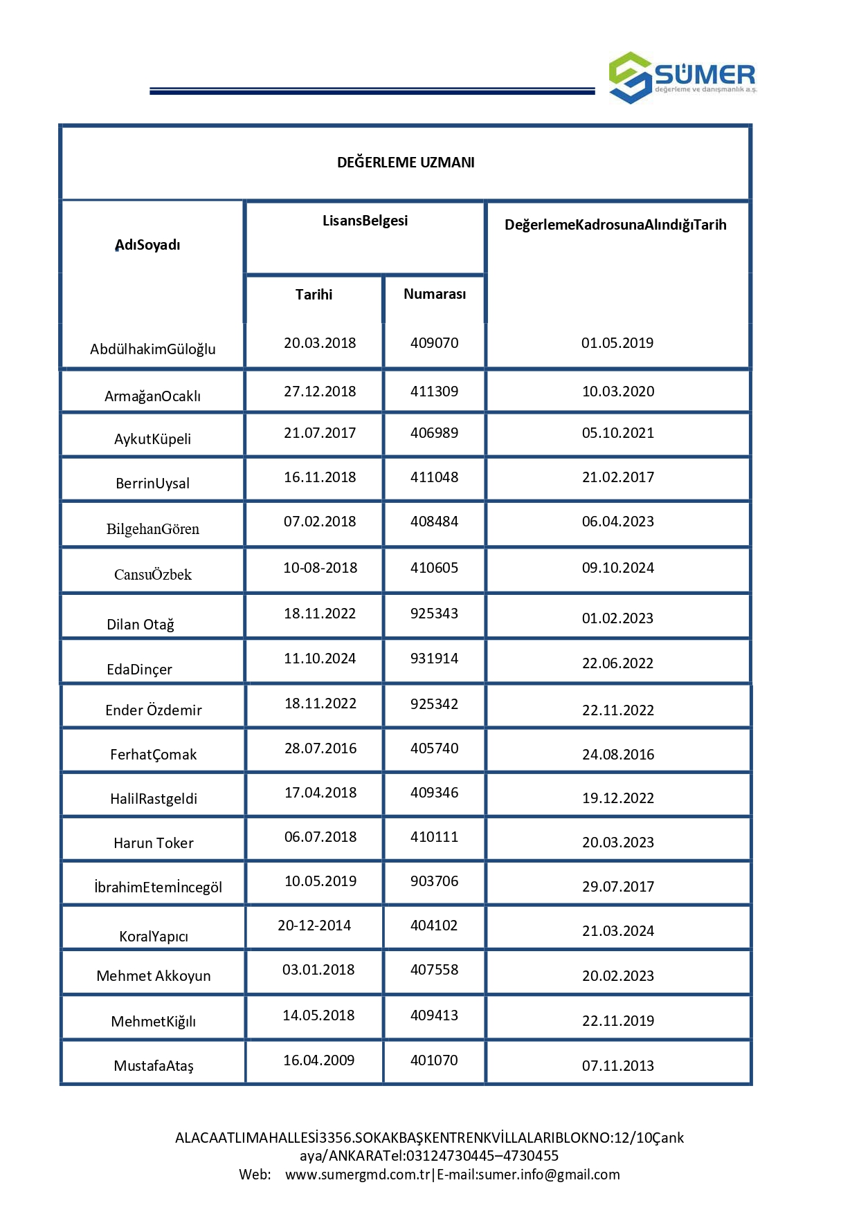 Sümer Gayrimenkul Değerleme ve Danışmanlık A.Ş.